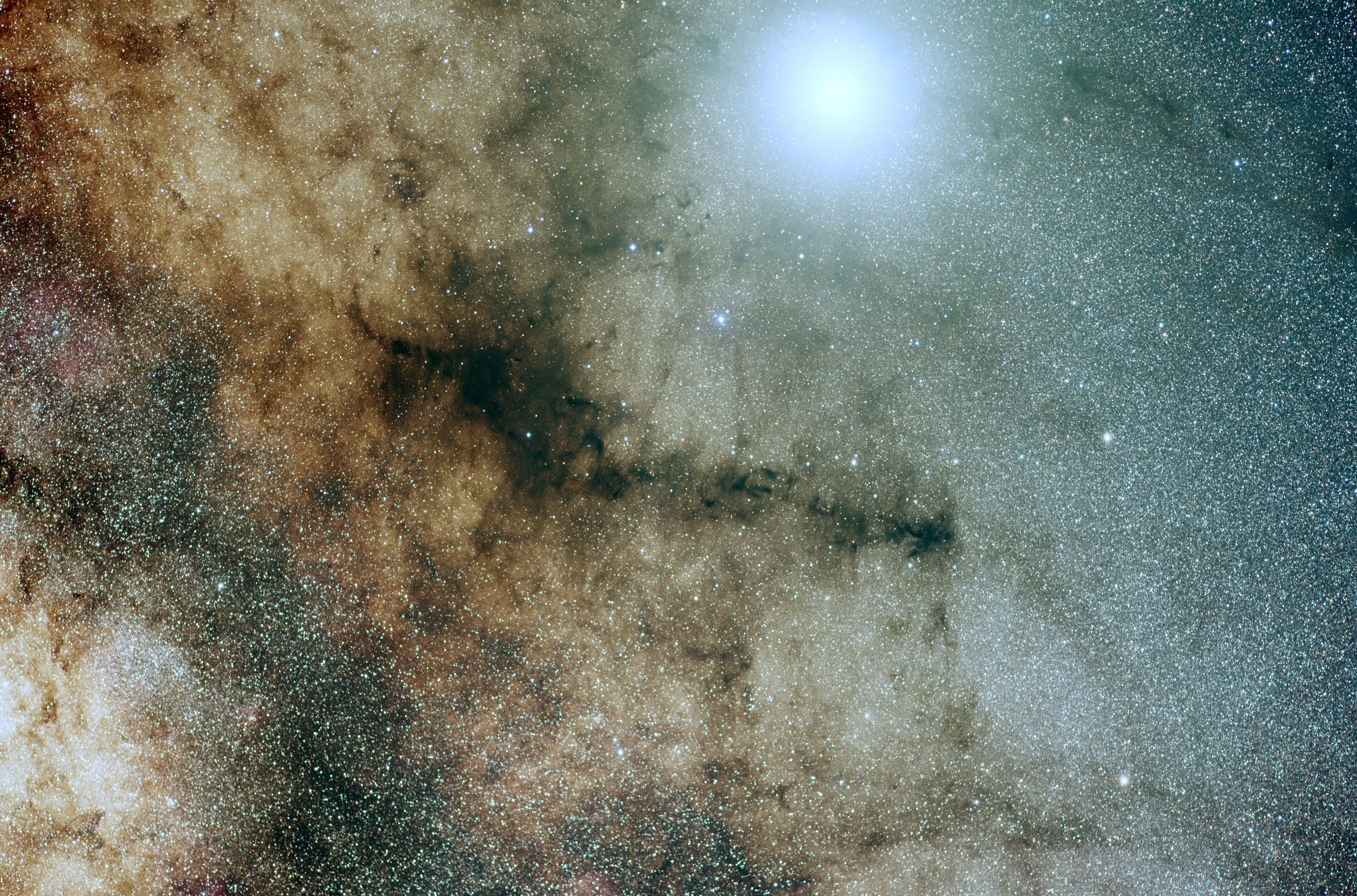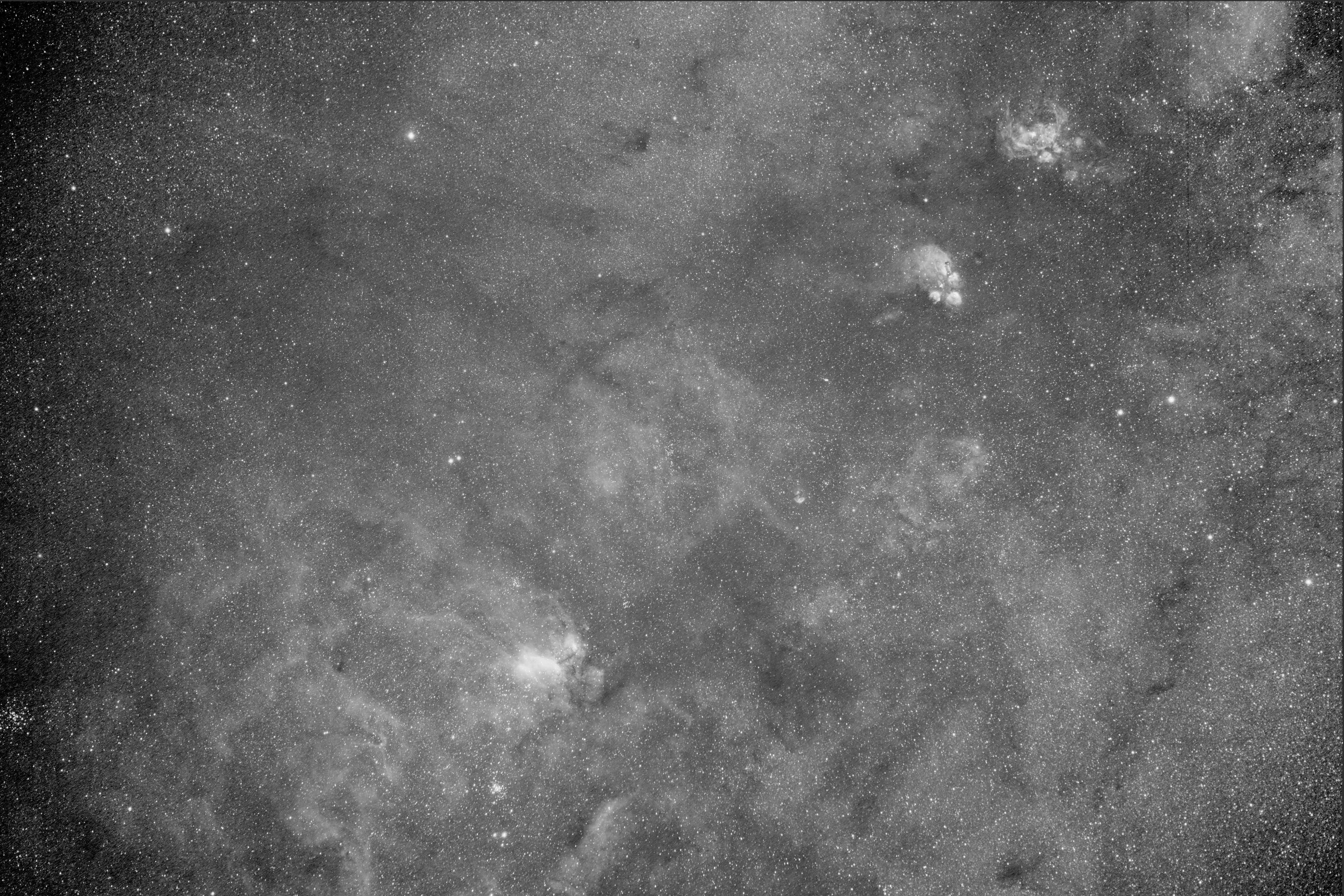 The ideal instrument to make wide field views of the Milky Way, search for novae, etc. Limited toward the northern sky. Typical exposure, one minute, maximum 5 minutes. Very luminous instrument, do not use during full moon, would saturate on the sky easily (except with Halpha filter). Autoguiding possible (with QHY miniguidescope).